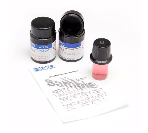 НI97738-11 - это набор калибровочных стандартов, который позволяет пользователям проверять и калибровать колориметр на хлора диоксид HI97738. Включает в себя одну герметичную кювету «A» для обнуления измерителя и одну кювету «B», которая используется для проверки или калибровки. Ожидаемое значение стандарта «B» составляет 1,00 ± 0,010 г / л диоксида хлора при 25 ° C.